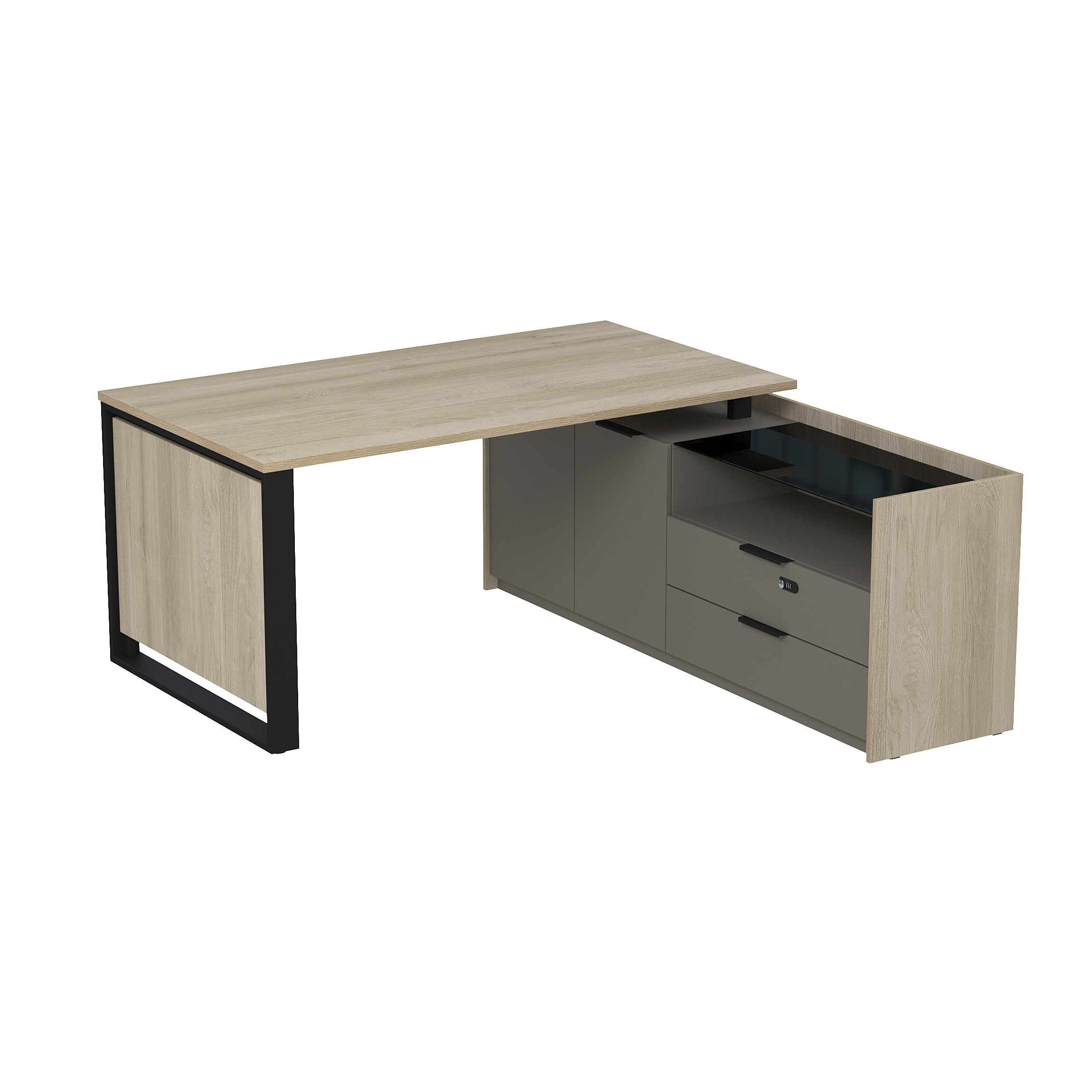 Стол рабочий на опорной двусост тумбе, с ящ (метаб), с код замком, Magnetic 15СОД-КЗ.1609, 166x176,8x75 см