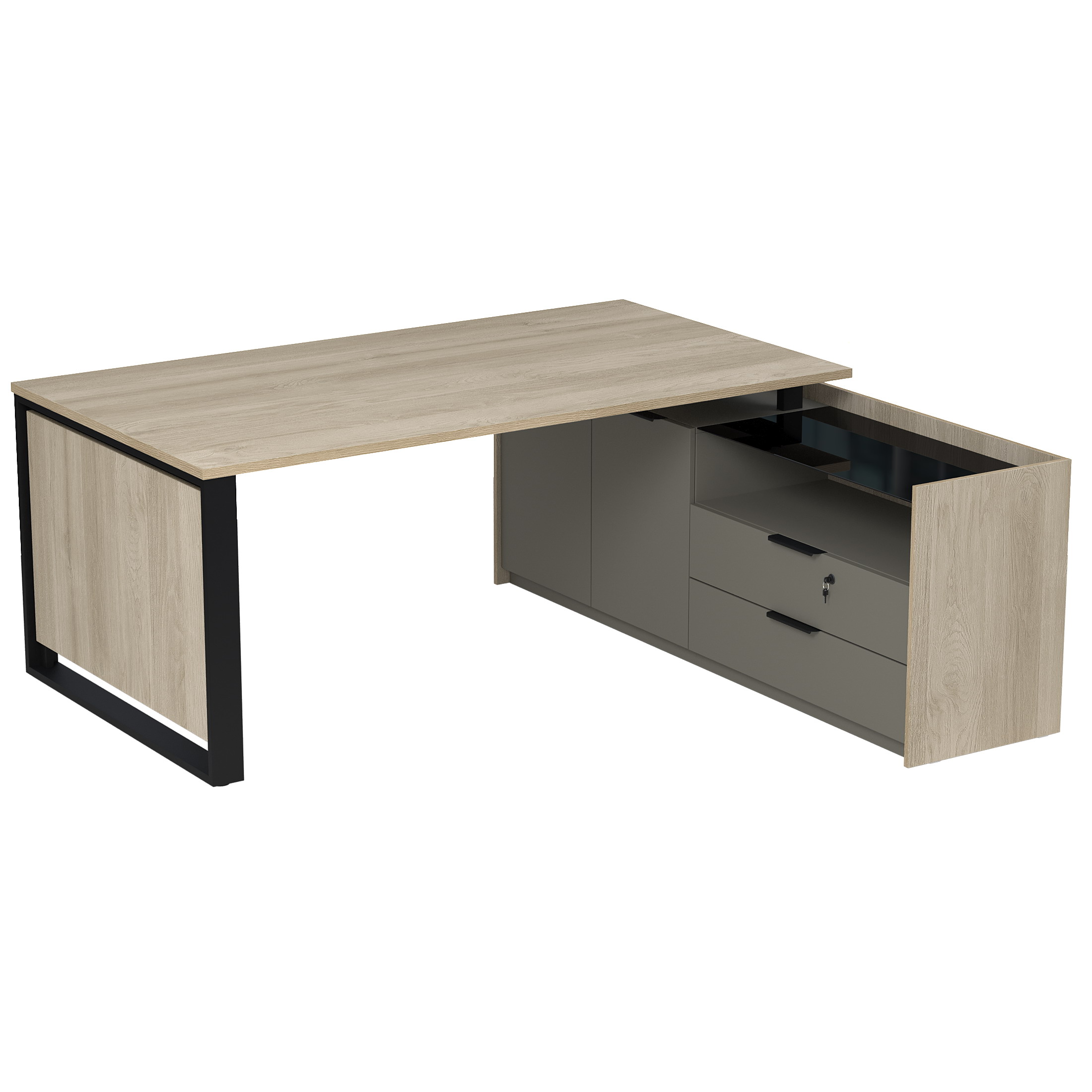 Стол рабочий на опорной двусост тумбе, с ящ (метаб), с замком, Magnetic 15СОД.1810, 186x176,8x75 см