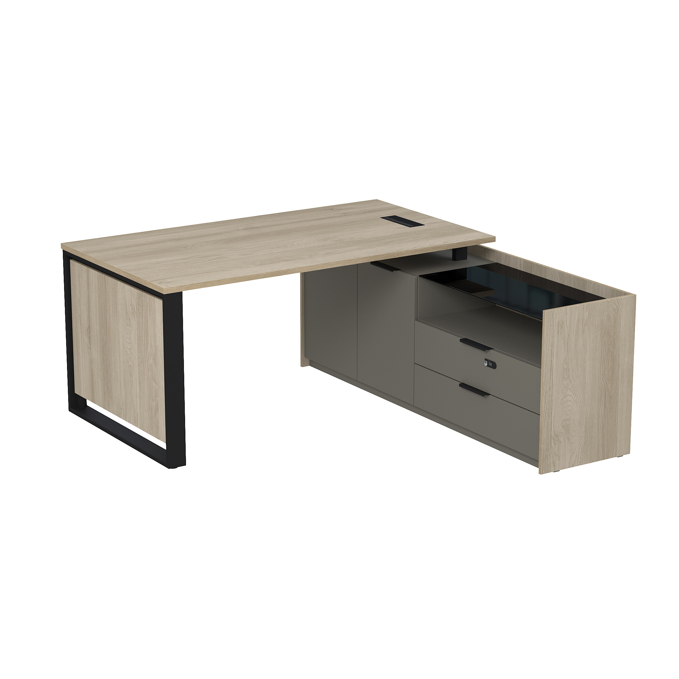 Стол рабочий с люч, на опор двусост тумбе, с ящ (метаб), с код замком, Magnetic 15СОЛД-КЗ.1609, 166x176,8x75 см