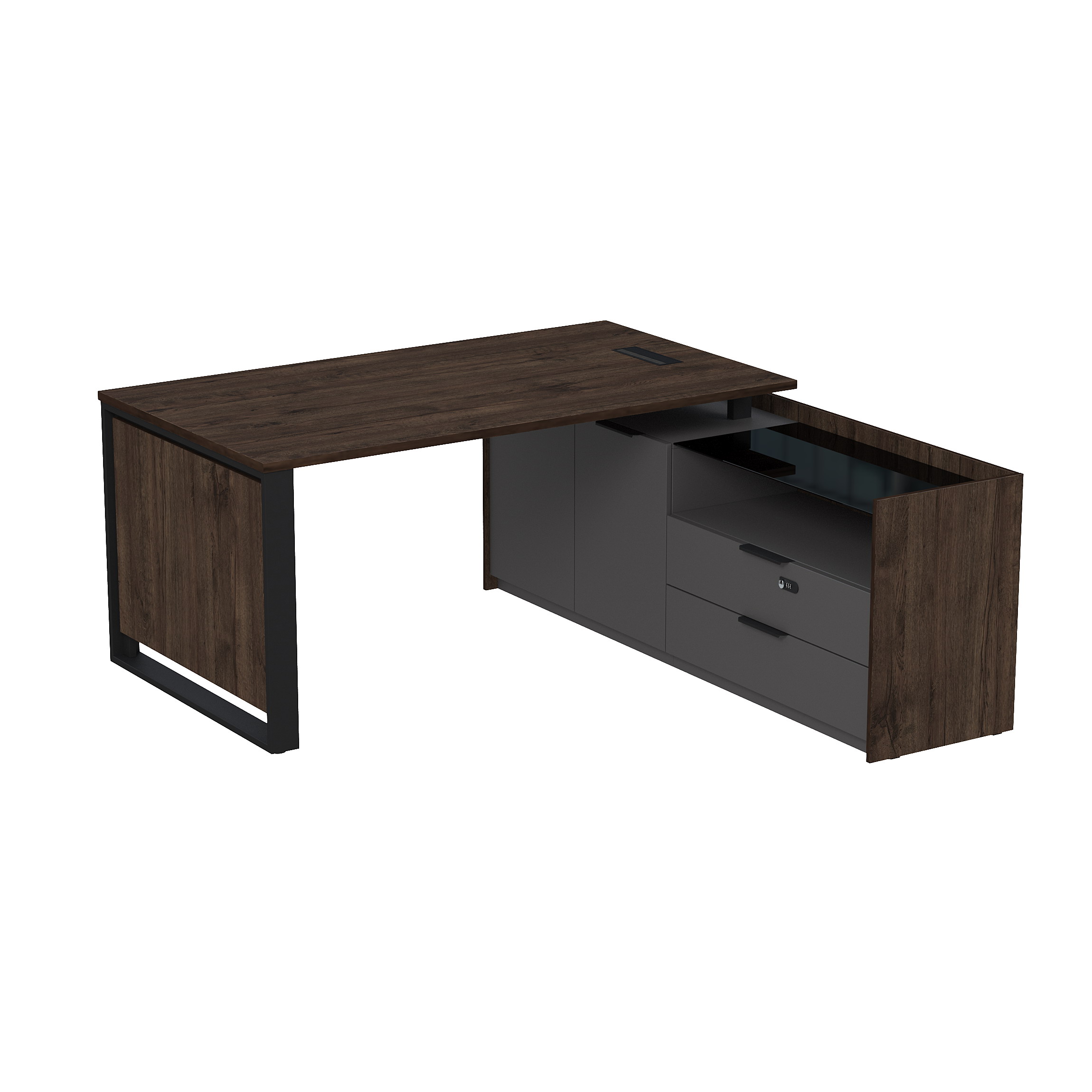 Стол рабочий с люч, на опорной двусост тумбе, с ящ, с код замком, Magnetic 15СОЛД-КЗ-ШД.1609, 166x176,8x75 см